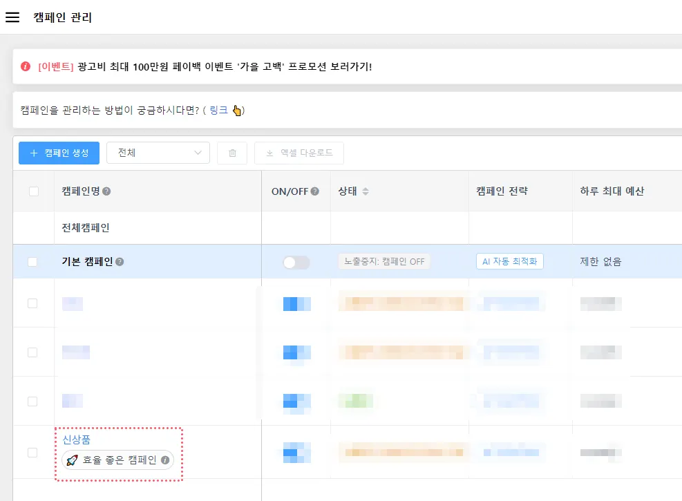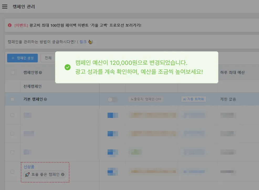 ‘효율 좋은 캠페인’ 도대체 어떤 기능인가요?