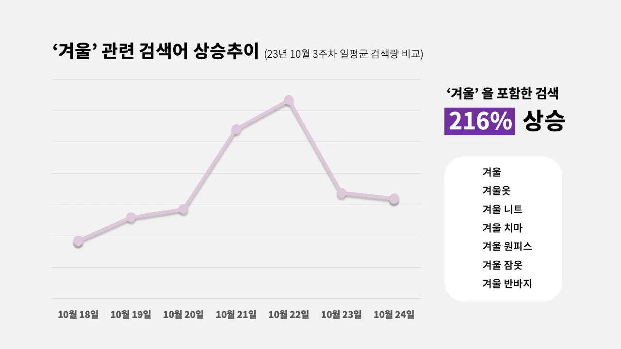10월 중순부터 ‘겨울’을 포함한 키워드 검색량이 급상승해요!