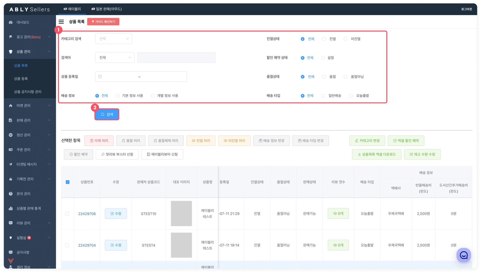2) 에이블리 어드민에서 오늘출발로 설정할 상품 리스트 엑셀 다운받기