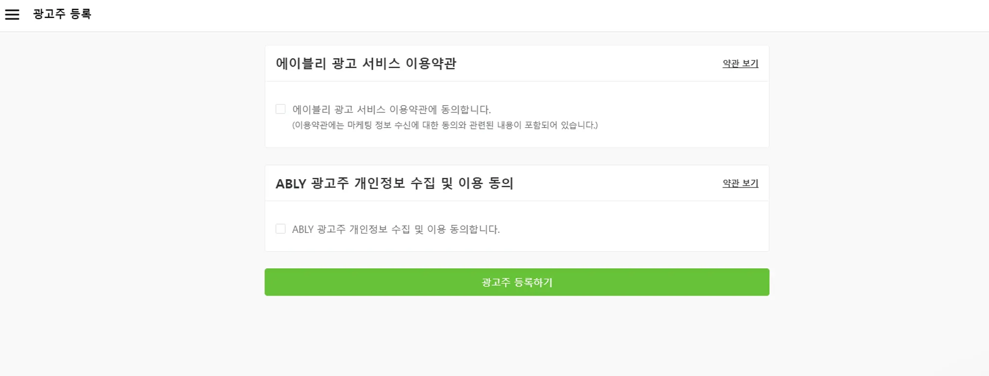(셀러어드민 가입 시 광고주 등록을 완료한 경우, 위 화면이 보이지 않습니다.)