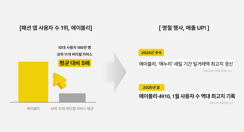 그렇기에 오히려 에이블리는 명절에 유입과 구매가 높아져요!