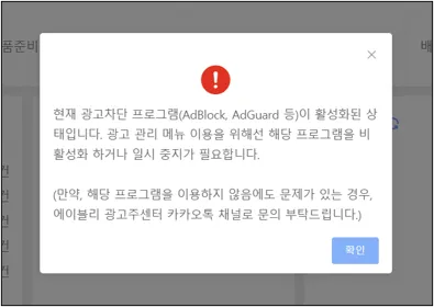 아래와 같이 광고 차단을 풀어주시면 됩니다!