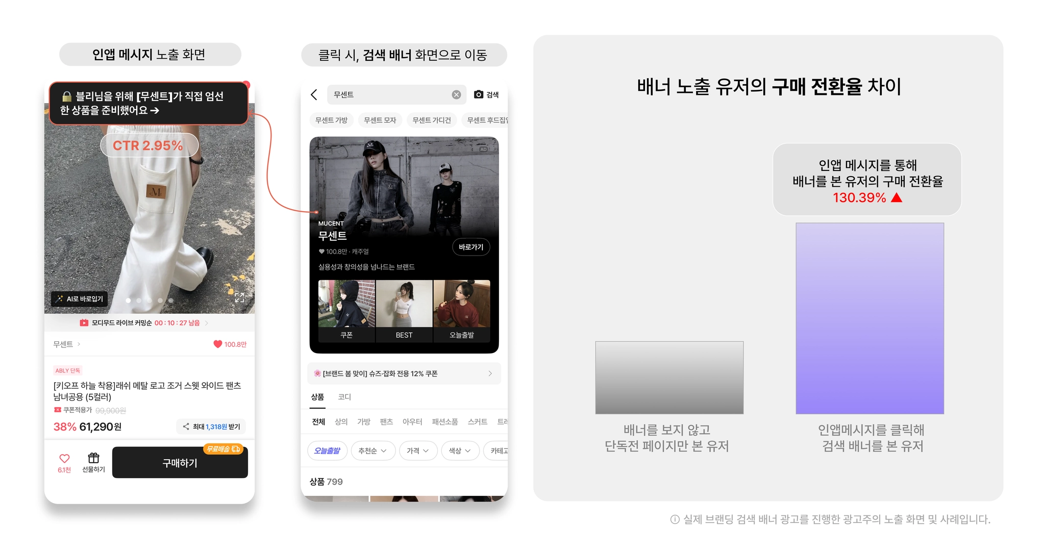 내 마켓을 검색하지 않은 고객에게도 브랜딩 검색 배너를 노출할 수 있습니다.인앱 메시지 상품 연계