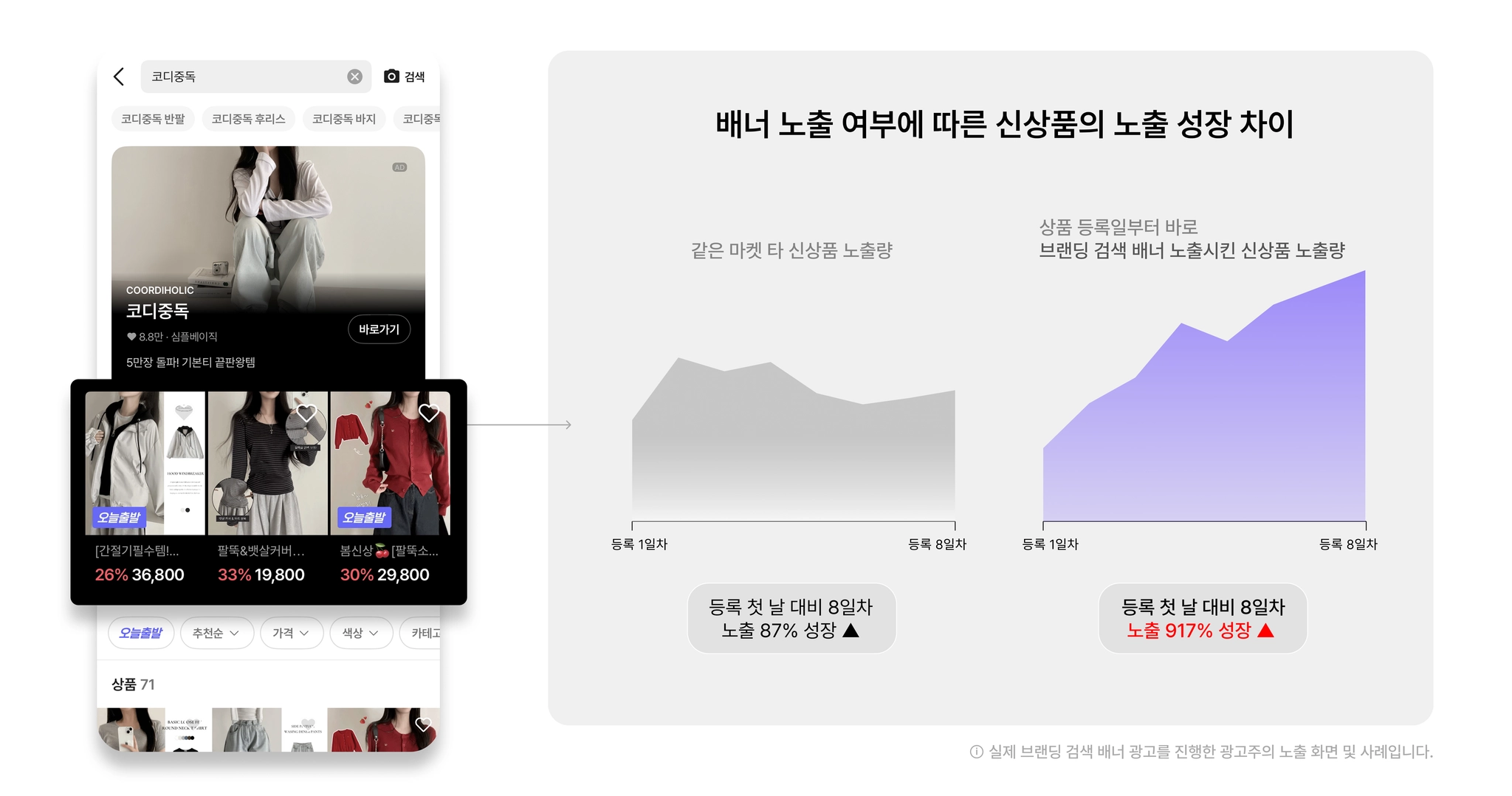 초기 노출이 제한적인 신상품을 검색 상단에 노출하여, 빠르게 데이터를 확보하고 부스팅할 수 있습니다.
