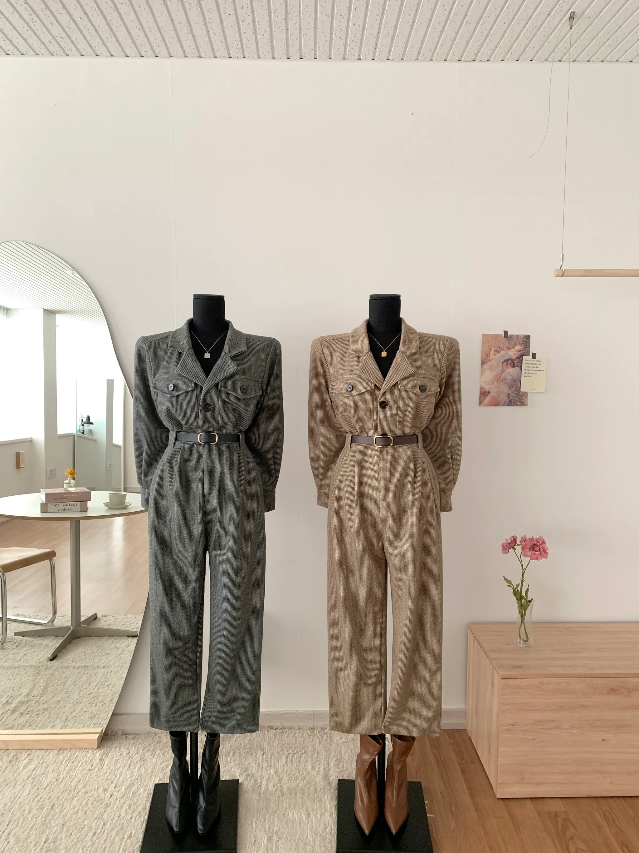 (데일리모어 베스트 상품 벨트 점프수트(좌측)과 체크 크롭 자켓 스커트 투피스(우측))