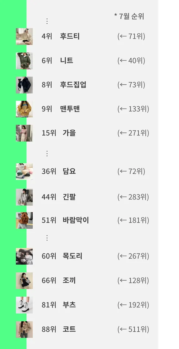 유행에 민감한 에이블리 고객님들은, 8월부터 가을 아이템을 검색합니다.