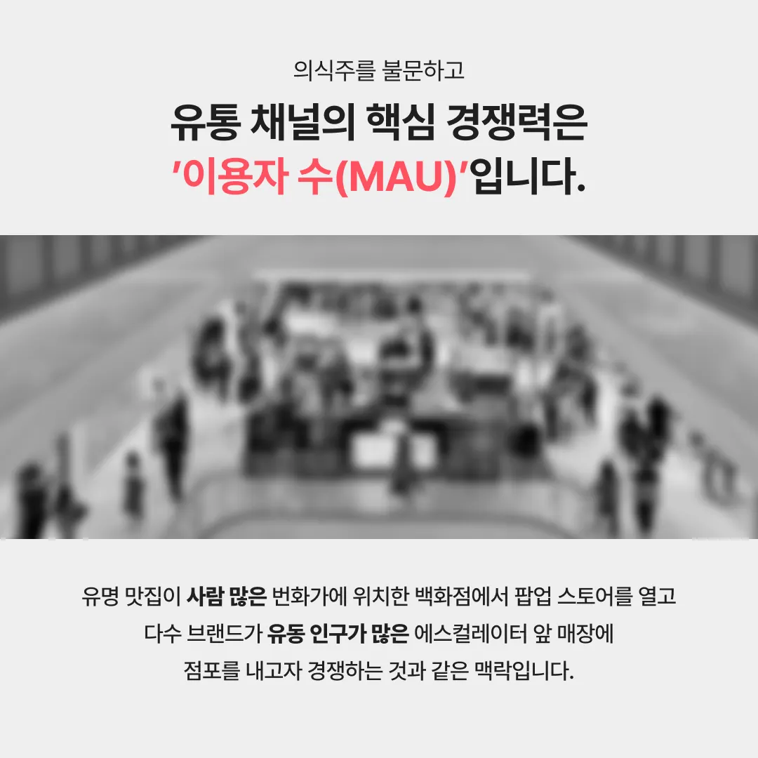 버티컬 커머스에서 목이 좋은 장소를 판별하기 위한 1순위 지표가 바로 이용자 수이기 때문에,