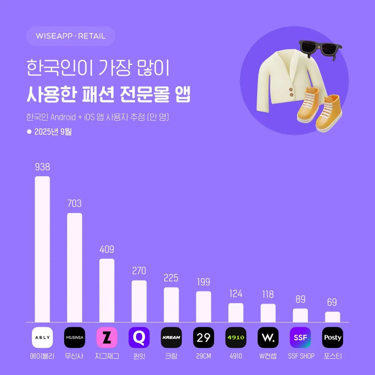 MAU 5년 연속 버티컬 커머스 1위, 에이블리 + 4910 합산 월 이용자 1,000만 명 돌파
