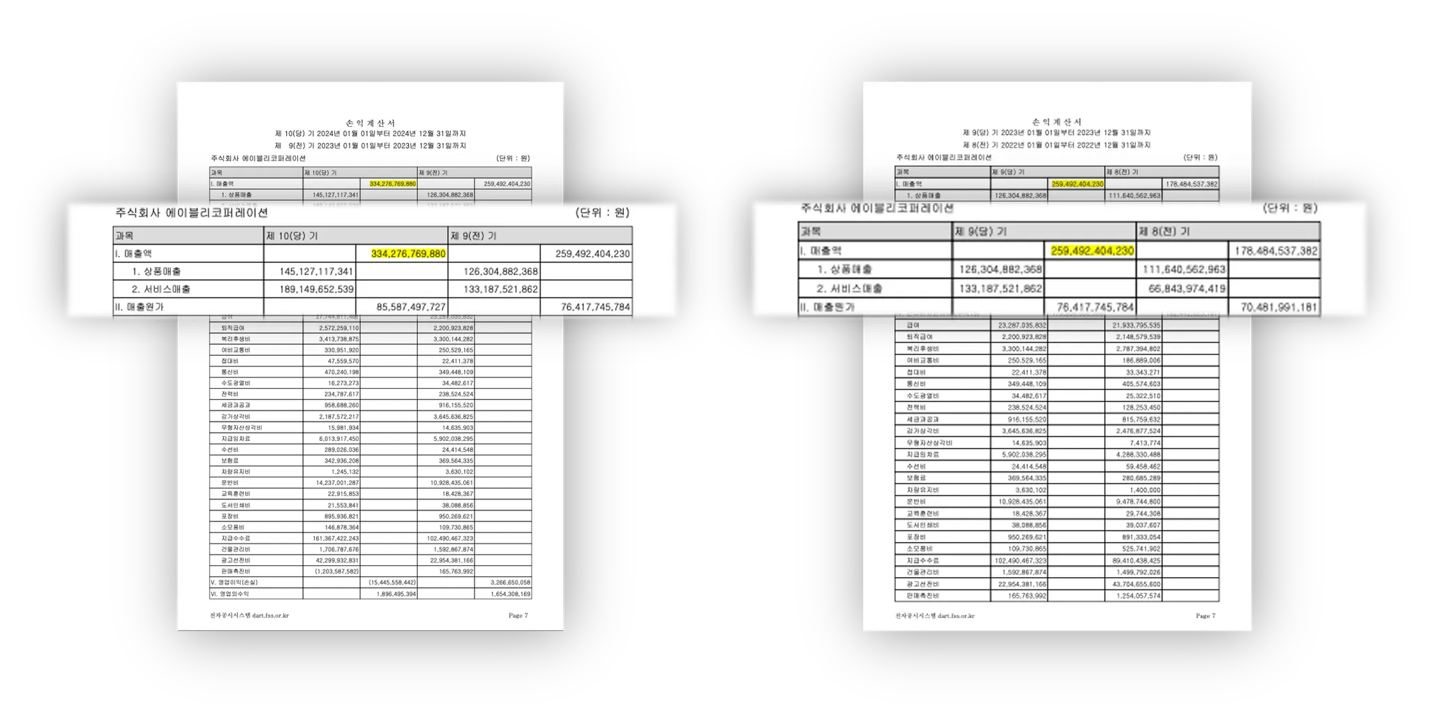 *금융감독원 전자공시시스템(DART), (주)에이블리코퍼레이션 2022-2024년도 감사보고서
