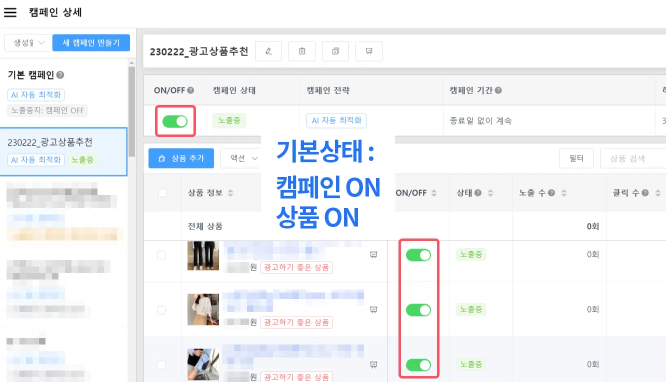 STEP 2. 추천 상품을 새 캠페인으로 등록하기