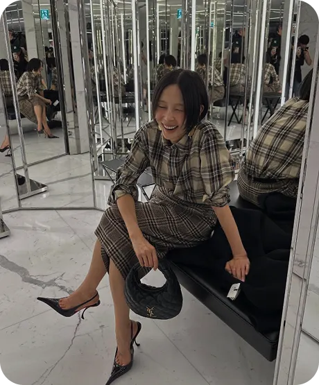 플레이드 체크(여러 색의 작고 복잡한 격자무늬)는 모양만으로 오밀조밀 작은 체크무늬보다 고즈넉한 감성을 풍김