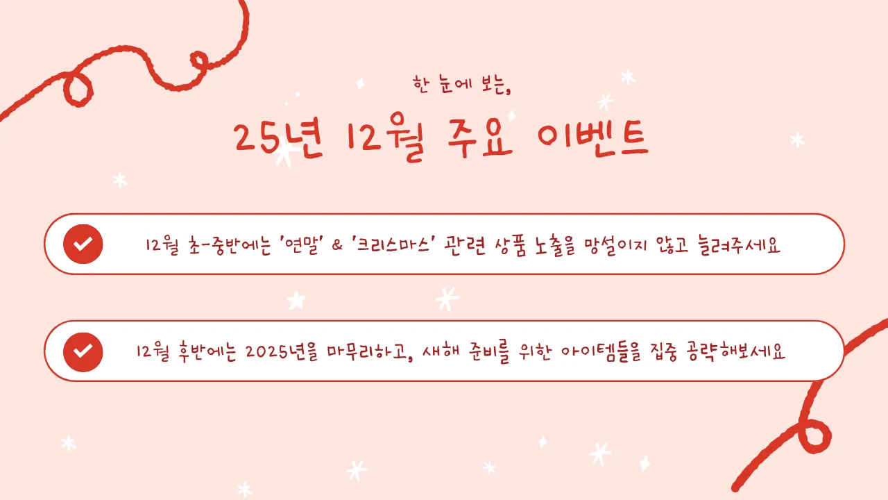 안녕하세요, 셀러님! 어느덧 2025년의 마지막 달, 12월이 찾아왔어요.