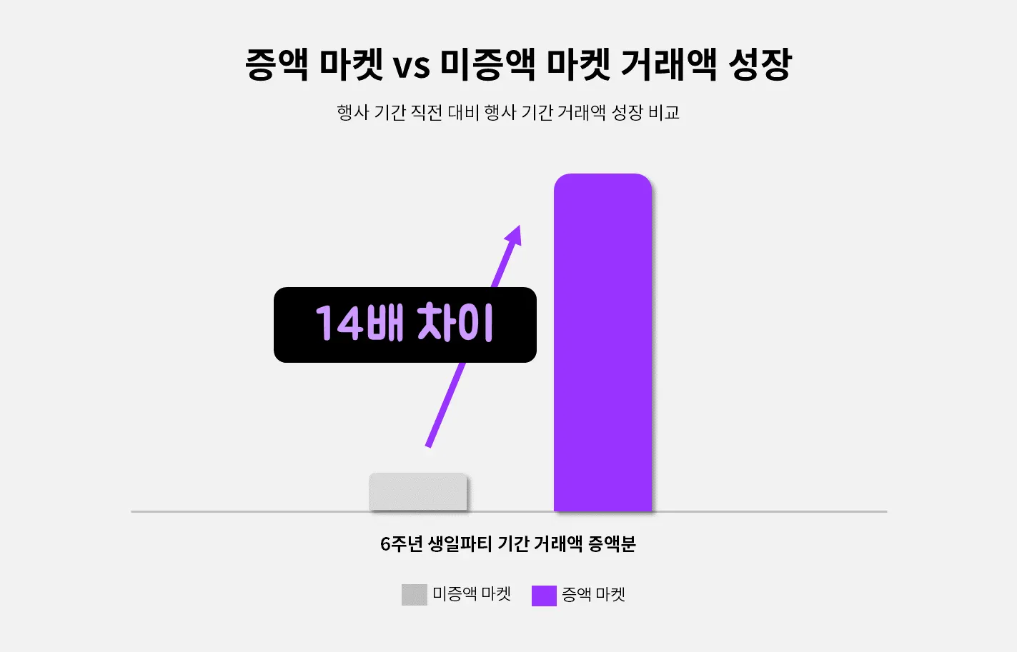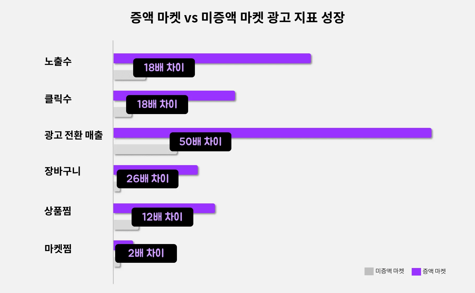 프로모션 기간 동안 광고비를 증액한 마켓은 그렇지 않은 마켓에 비해 훨씬 큰 거래액 성장을 보였는데요!
