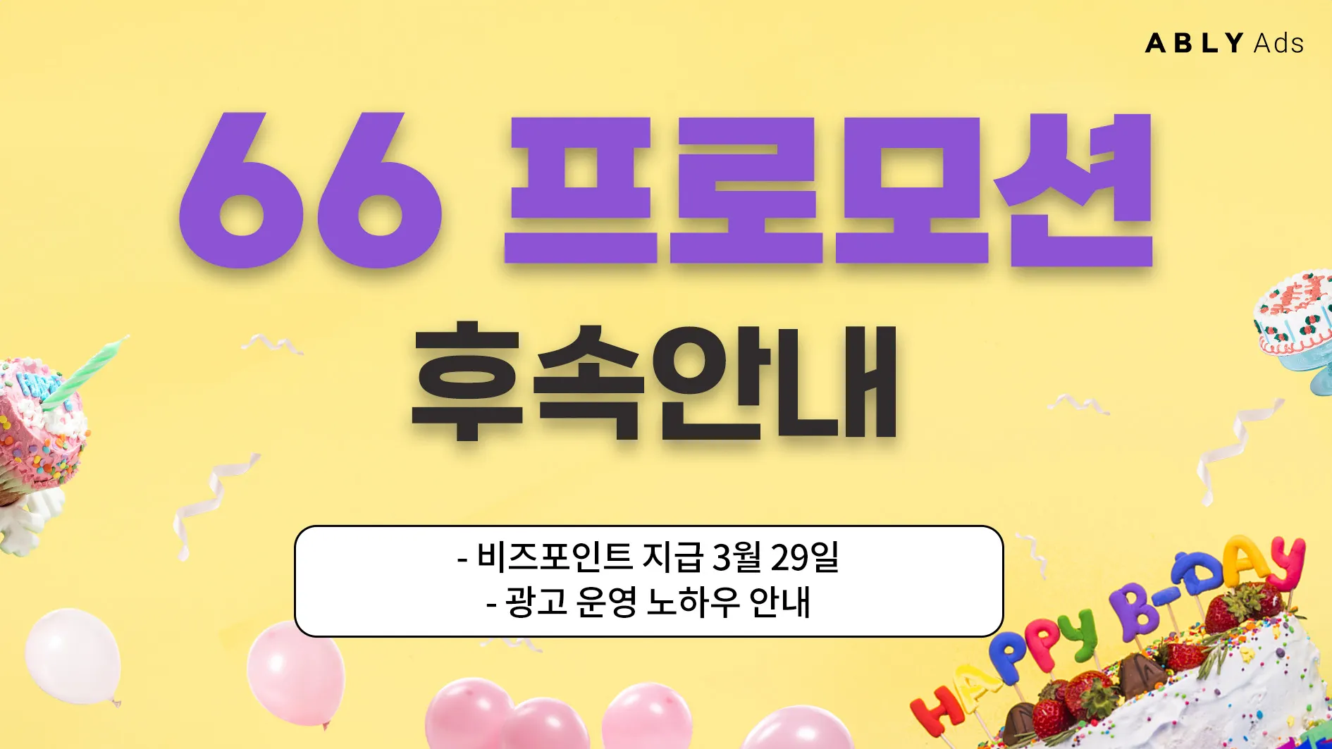 2024년 가장 큰 행사 중 하나인 에이블리 6주년 생일파티에 맞추어, 광고주님의 거래액 성장을 지원하고자 마련한 ‘66 프로모션’에 참여해주셔서 다시 한 번 감사 드립니다.
