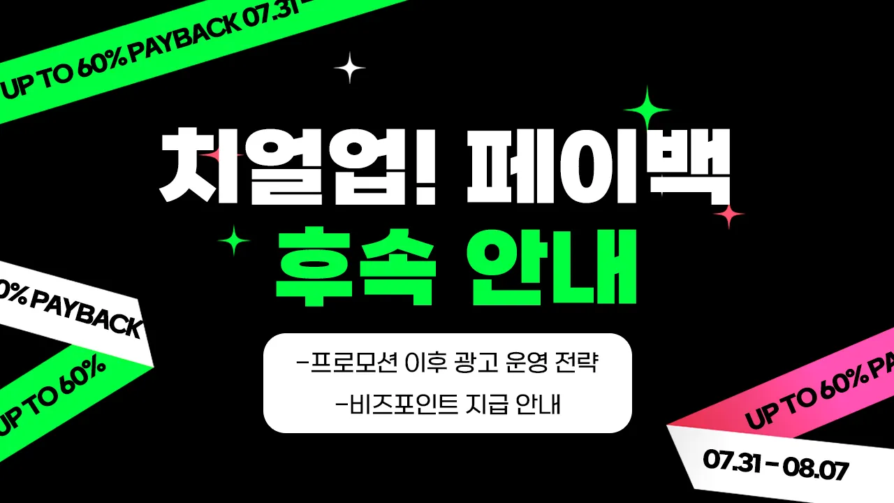 광고주님께서 꾸준히 광고를 유지하실 수 있도록 마련한 치얼업! 페이백 프로모션이 종료되었습니다.