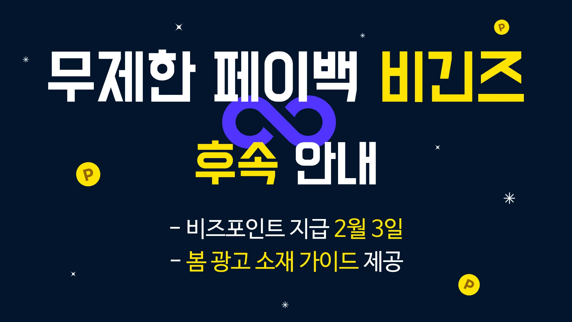 광고주님의 매출 상승에 도움을 드리고자 진행한 2024년의 첫 무제한 페이백 프로모션 ‘무제한 페이백 비긴즈’에 참여해주셔서 감사합니다.