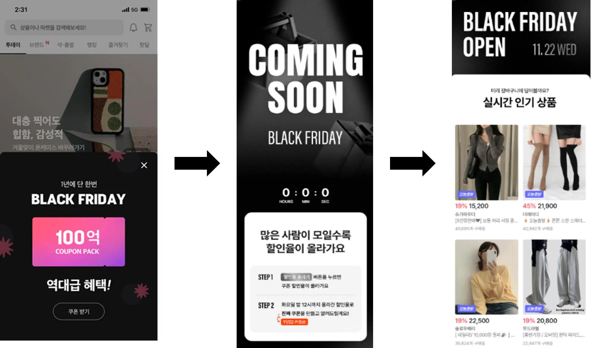 에이블리 블랙프라이데이 메인 행사의 티징으로 진행되는 블랙프라이데이 커밍순 프로모션 모집 안내드립니다.본 프로모션은 1년 중 가장 큰 행사인 블랙프라이데이 직전에 진행되어 마켓의 주력 상품을 사전에 고객에게 노출해 인지도를 높이고, 구매 및 장바구니 담기 액션을 유도할 수 있는 기회입니다.