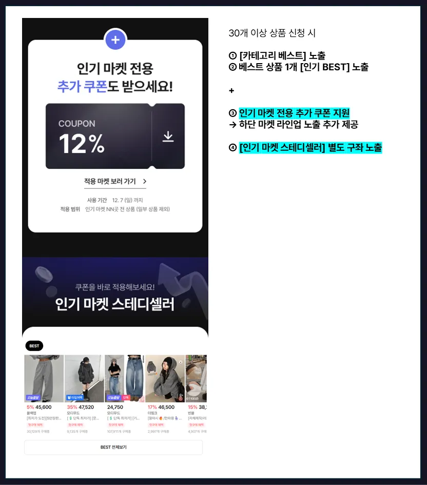 [인기 마켓 스테디셀러] 가로형 진열 구좌에 신청 상품 전체 추가 노출