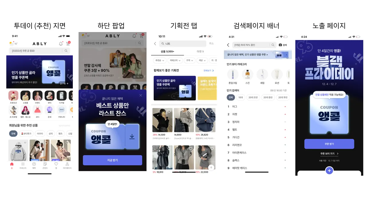 본 배너 기획전에서 발행되는 쿠폰은 에이블리 기본 정책에 따라 판매가의 5% 할인 금액은 셀러 부담이며, 그 외 추가 할인 금액은 에이블리가 부담합니다.
