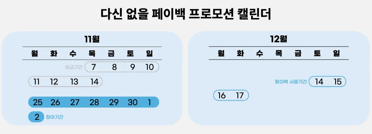 페이백 사용기간 | 12월 14일 토요일 지급 | 12/14 (토) ~ 12월 17일 (화) (4일) |