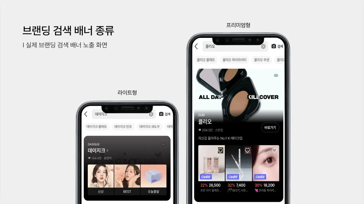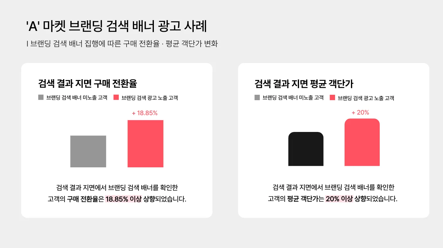 검색 유입 고객의 탐색을 확장하고, 구매 전환까지 유도하고 싶으시다면 브랜딩 검색 배너를 추천드려요.