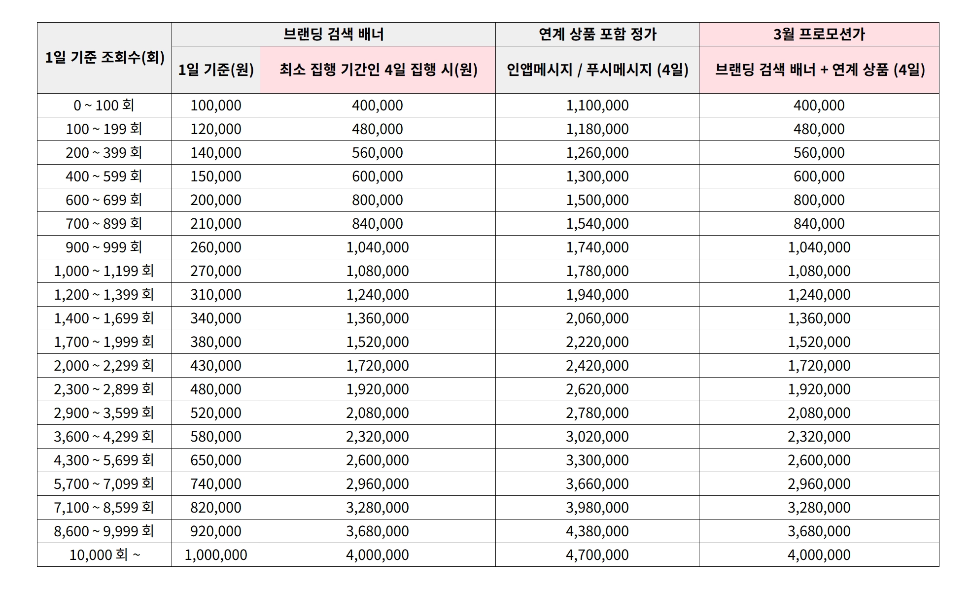 ※ 3월 집행 건 조회수 기준일 1월 21일 ~ 2월 19일 일평균
