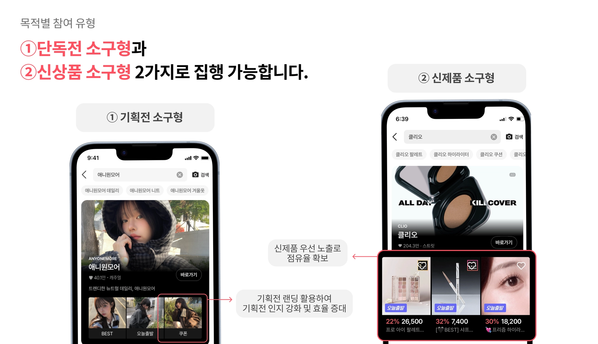 ※기획전 기간, 신제품 런칭 등의 경우에만 진행 가능합니다. |