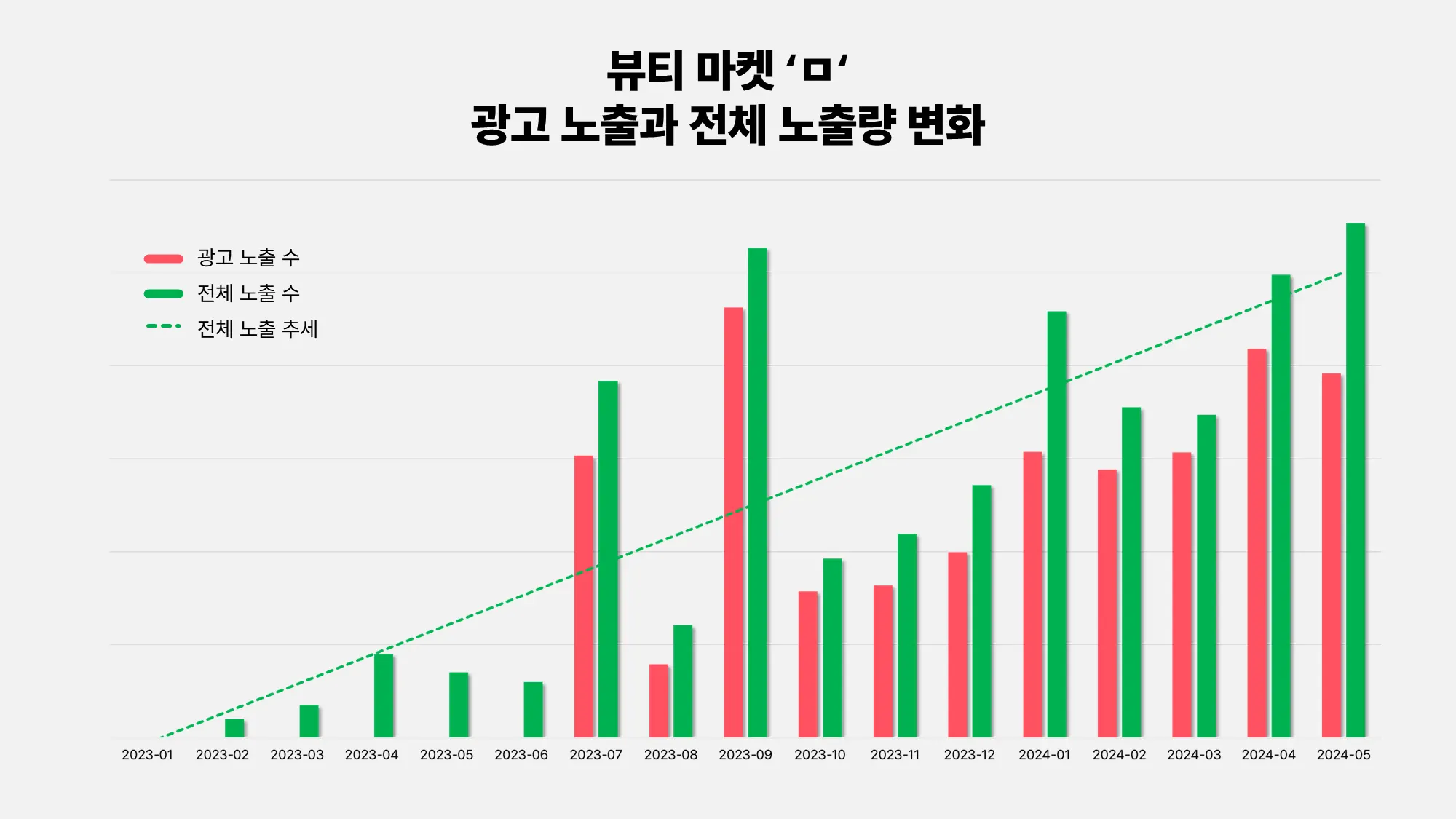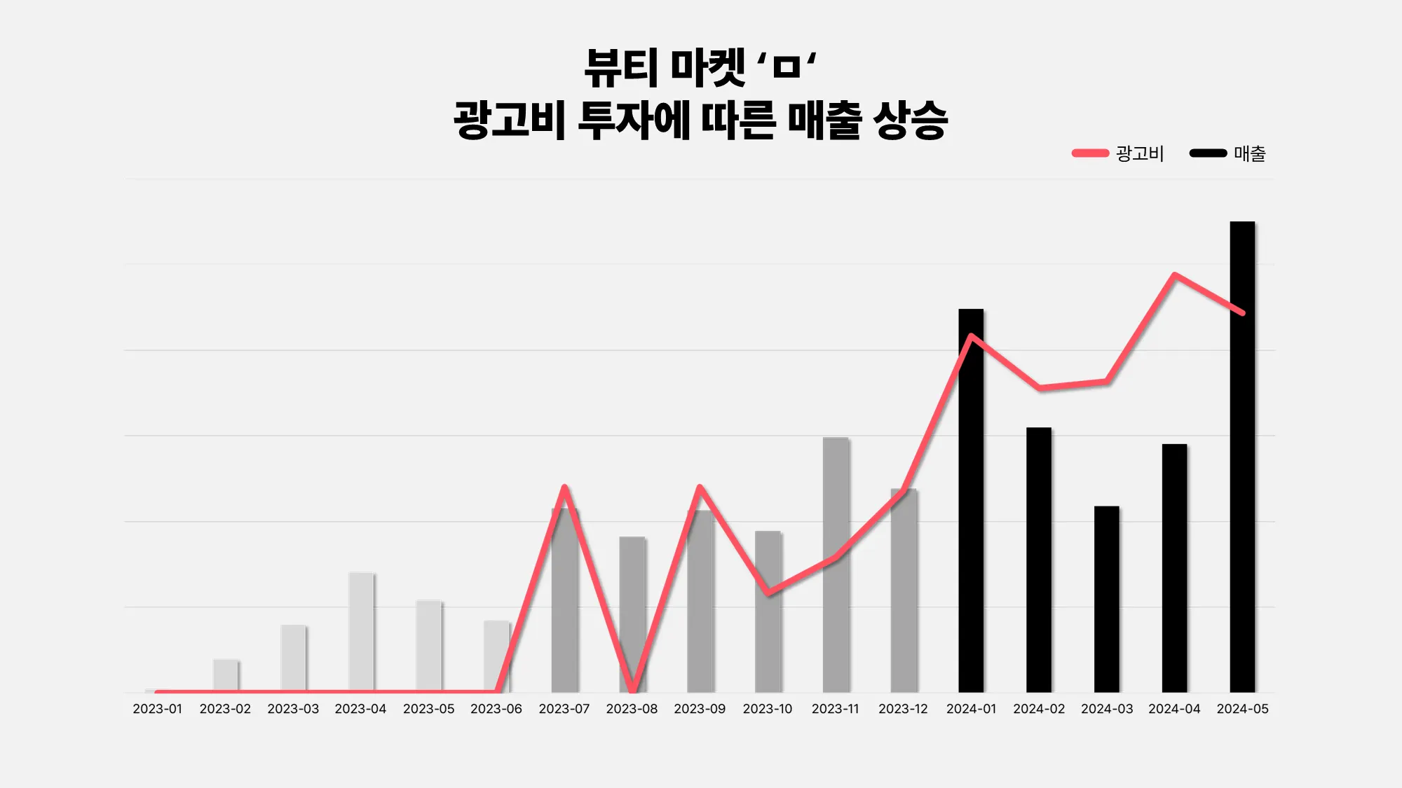카테고리 자체의 성장세와 더불어 광고를 활용해 독보적인 매출 성장을 이루고 있는 뷰티 마켓을 소개합니다