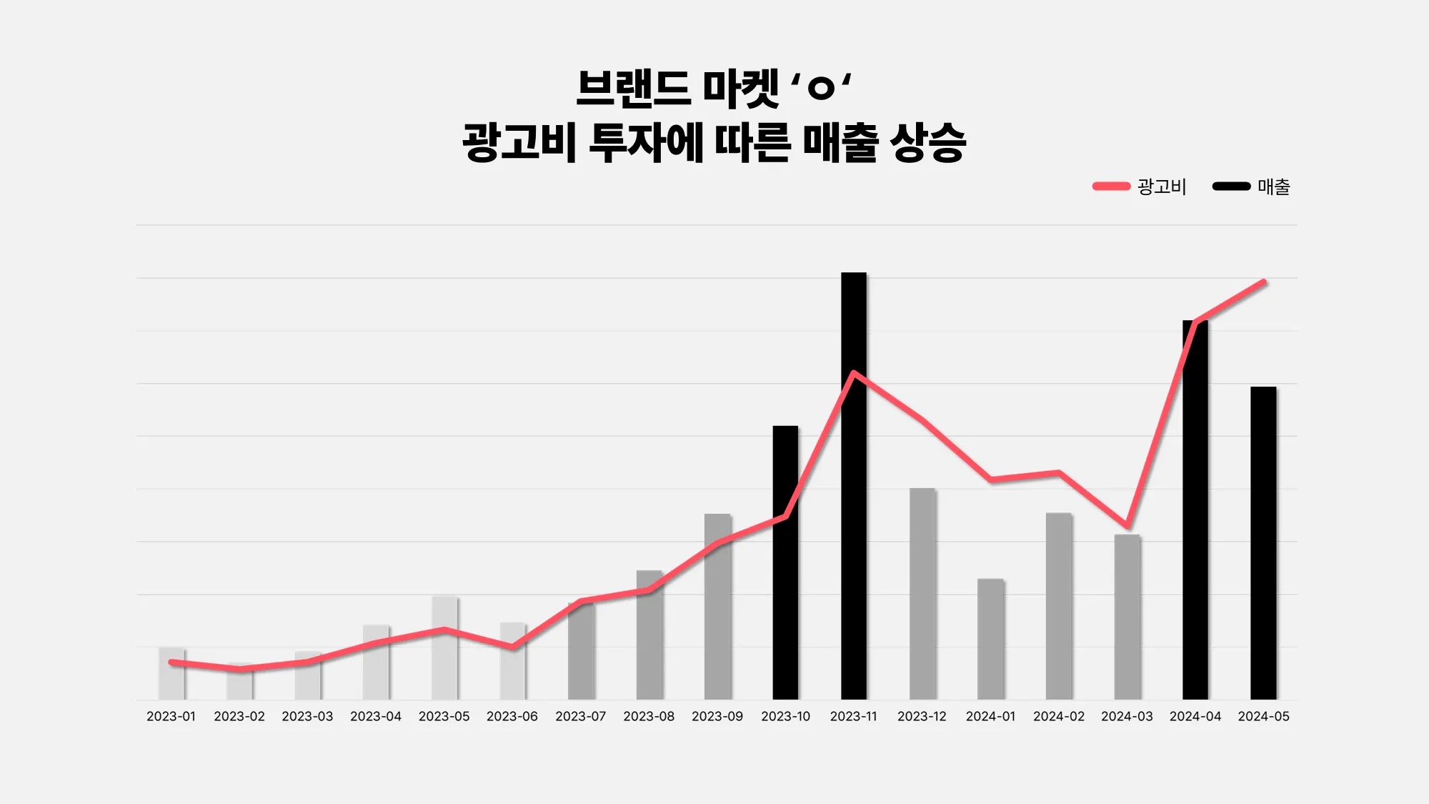 이후 현재도 광고비를 매월 60% 이상 증액하며 노출 속도를 늦추지 않고 있는데요!