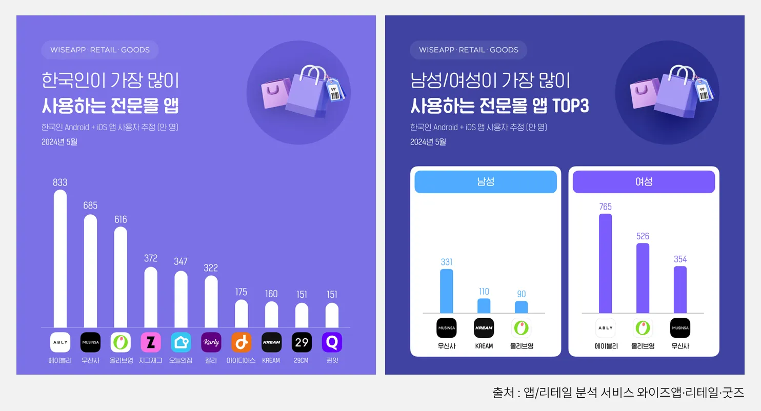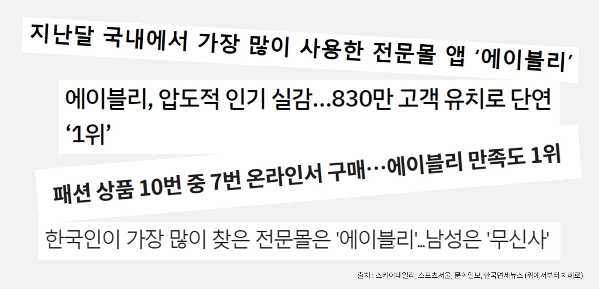 전문몰 앱 중 이용자 수 1위로 등극하며, 한국에서 가장 많이 사랑 받는 에이블리임을 확인할 수 있었는데요!