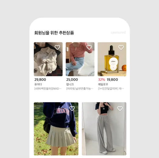 광고 소재(이미지)를 따로 만들지 않고 상품의 이미지가 그대로 노출되고,
