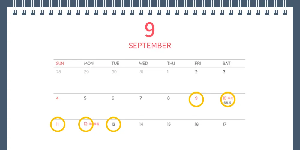 9월 “9일, 10일, 11일, 12일, 13일”을 주목하세요!”