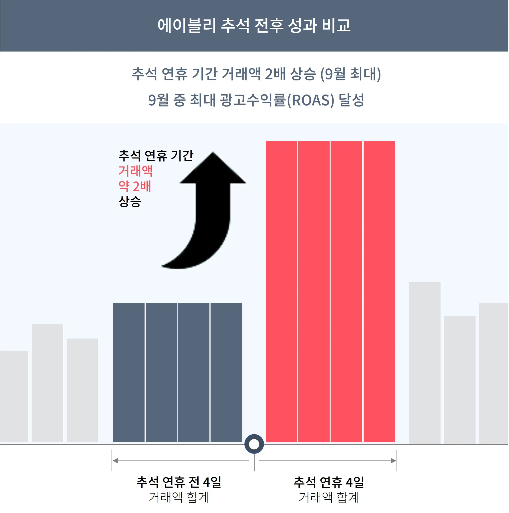결제율이 높고, 거래액이 높았던 작년 추석 연휴에 맞춰 광고를 진행하신 마켓의 경우, 광고 경쟁이 높지 않은 상태에서 평소보다 훨씬 높은 광고 성과를 달성할 수 있었습니다.