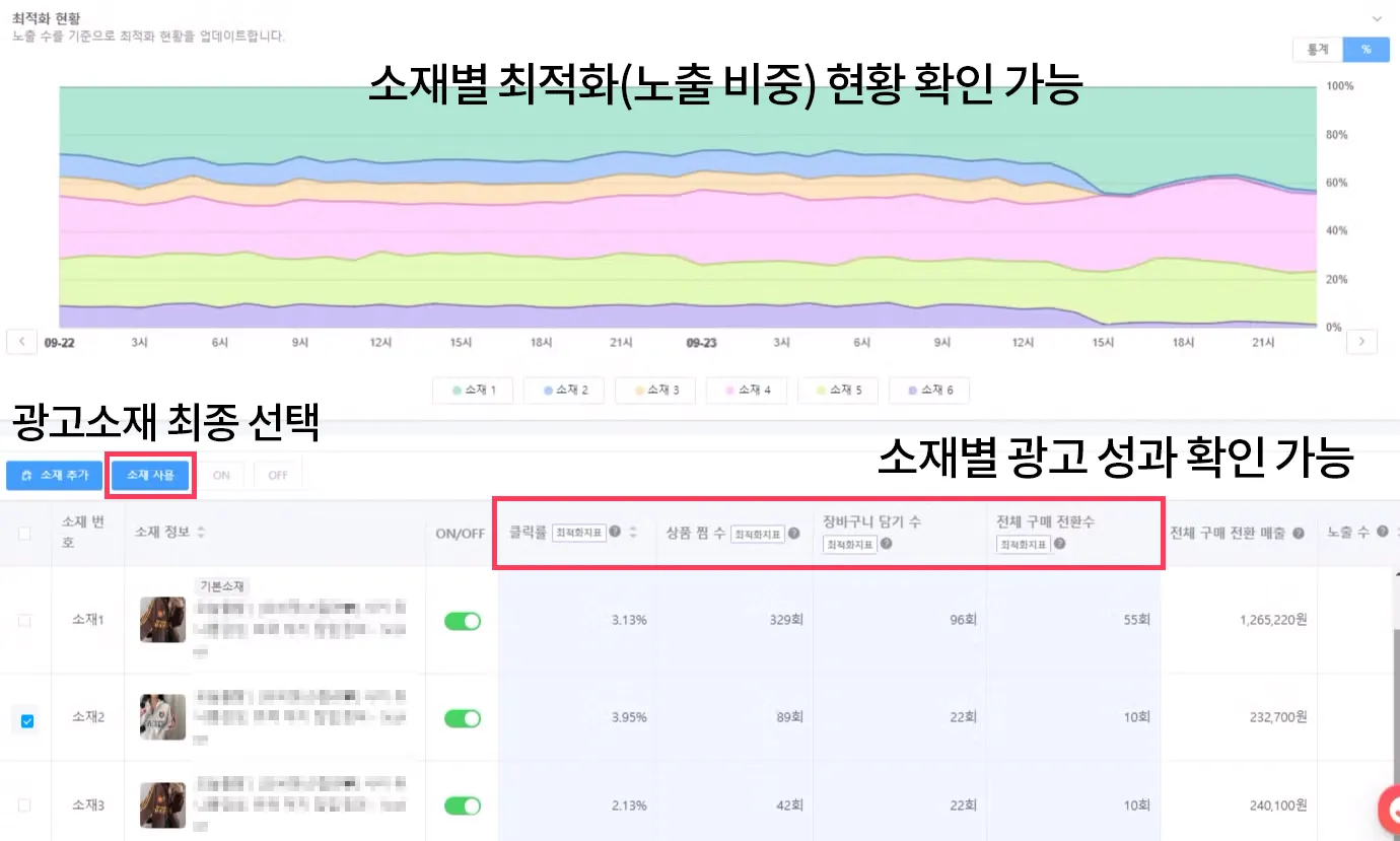 그럼 신규 기능인 광고 소재 자동 최적화를 통해 상품별 최적의 광고 소재를 확인하셔서, 광고 성과를 높여보시길 바랍니다.