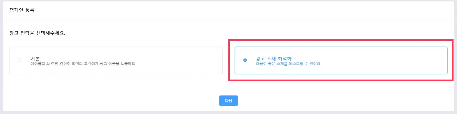 Step1. 캠페인 등록에서 ‘광고 소재 최적화’ 체크