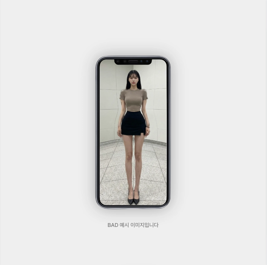 • 모델의 신체 비율이 비현실적으로 변형되어 보이는 경우