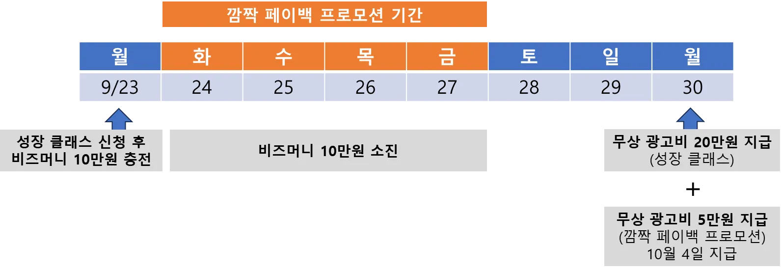성장 클래스 무상 광고비 20만원 + 프로모션 페이백을 추가로 받을 수 있어요!