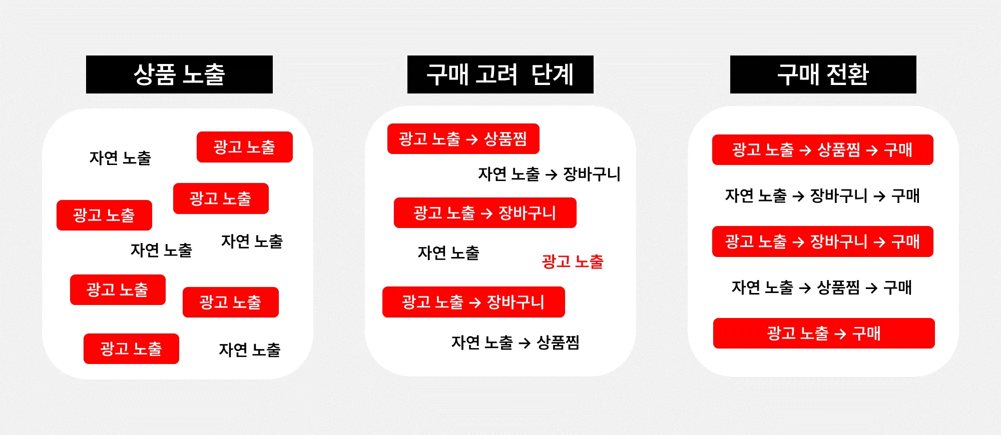 상품을 보고 바로 구매하거나, 상품을 기억해뒀다가 검색해서 구매하는 등 여러 구매 경로 중,
