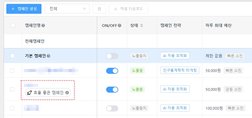 ‘효율 좋은 캠페인’ 왜 표시해주나요?