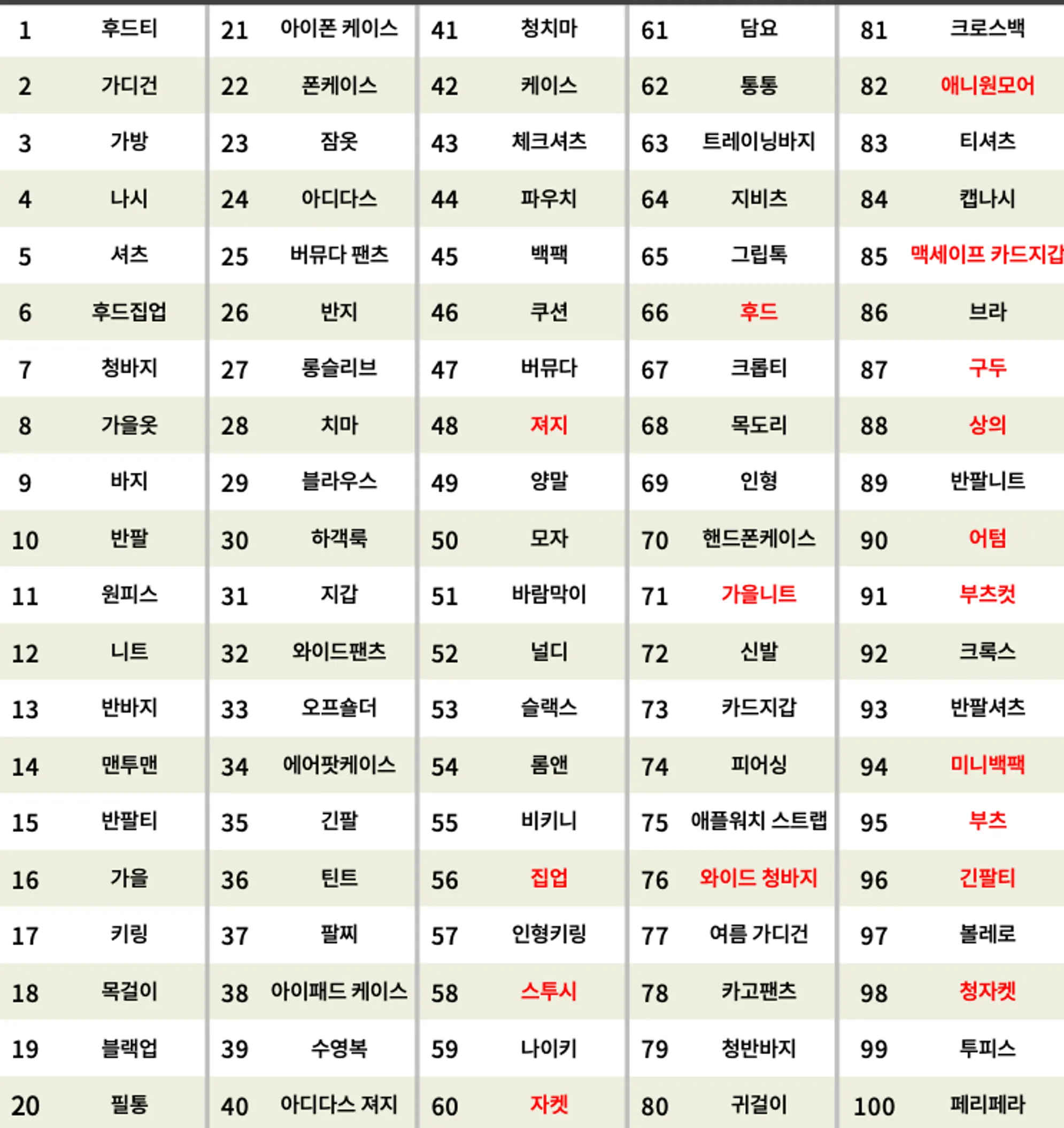 여름에서 가을로 넘어가는 9월 초는 아우터(집업 후드 긴팔티 등)에 대한 조회가 높은 편인데요! 가을이 시작되는 월 초는 특히 가을 신상품을 적극적으로 노출해 판매 매출을 늘리기 좋은 시기입니다.