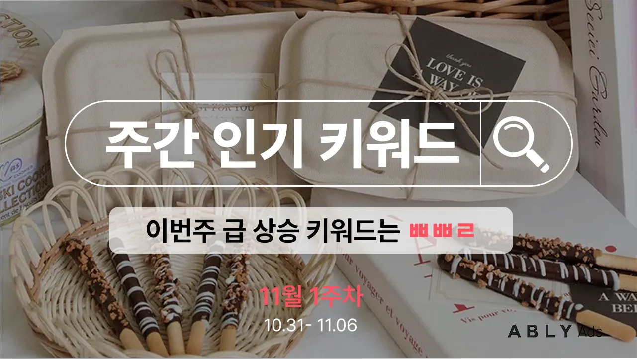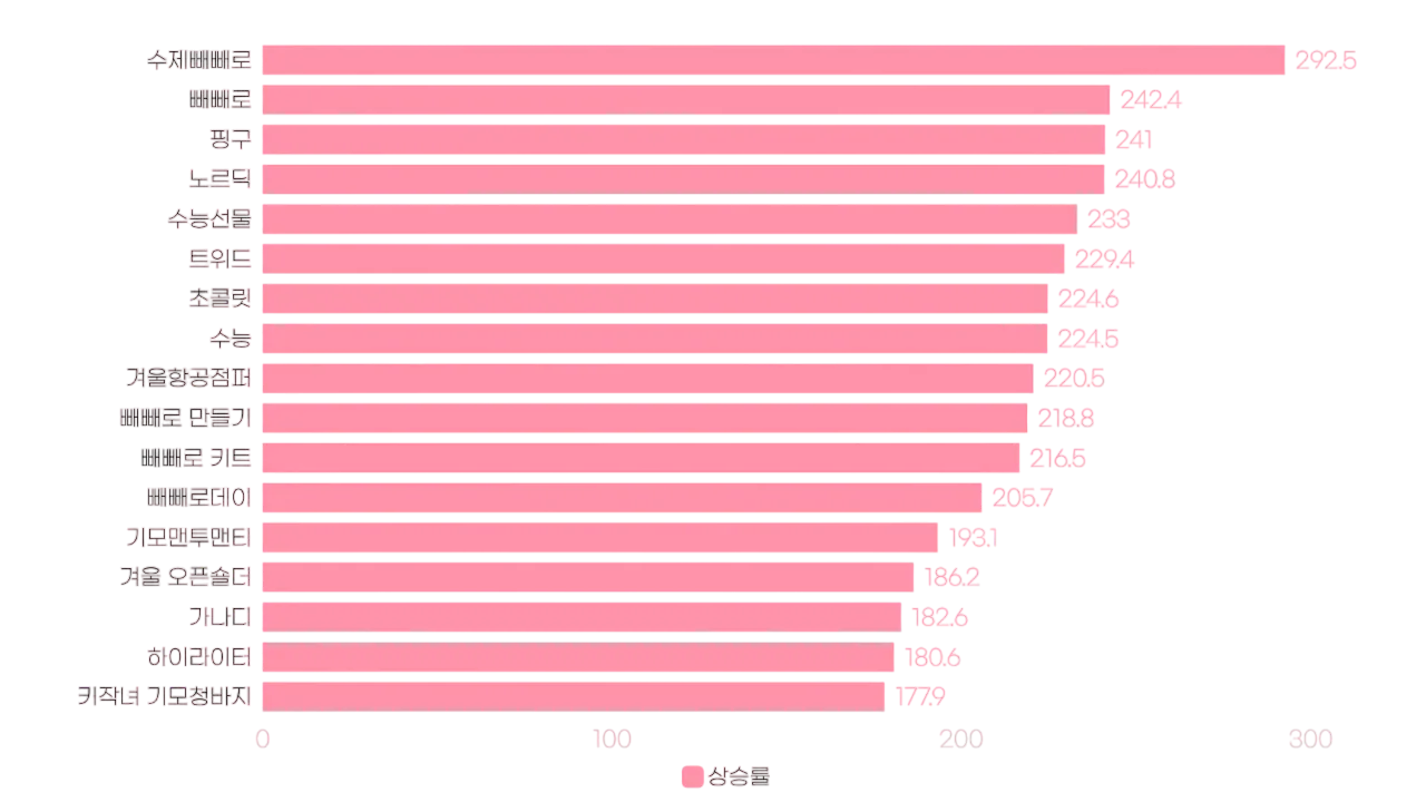 금주 급상승 키워드: 빼빼로, 수능선물, 초콜릿, 노르딕