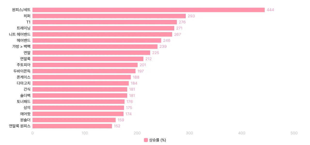 금주 급상승 키워드 : 원피스/세트, 헤어밴드, 연말, 주토피아, T1