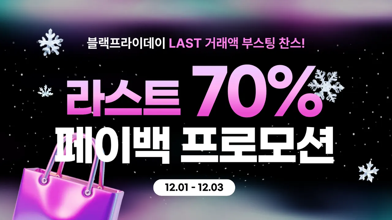 🩷 올해 마지막 거래액 부스팅 기회, 라스트 70% 페이백 오픈 임박
