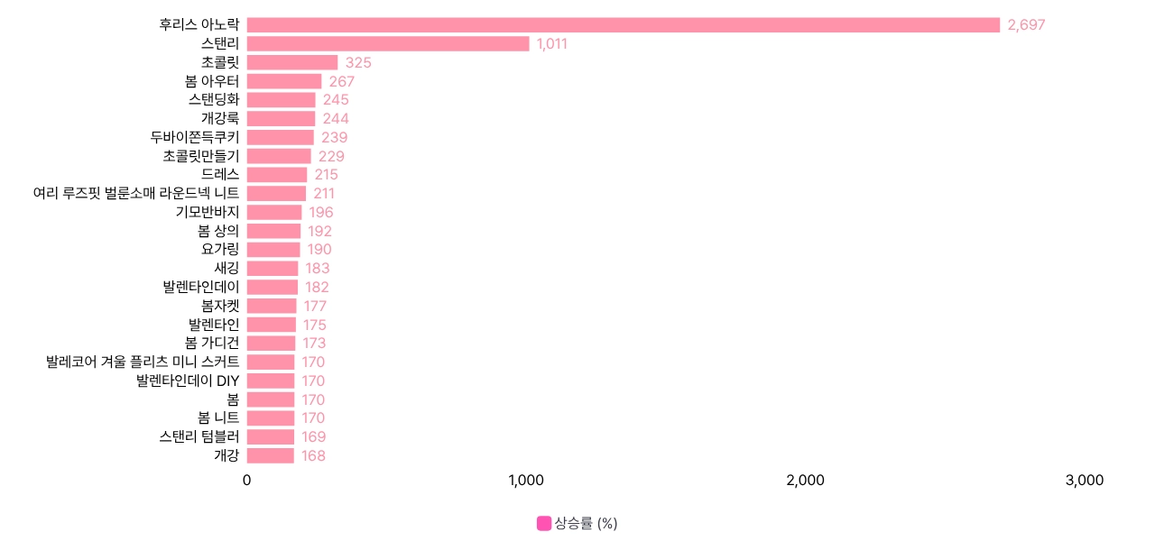 금주 급상승 키워드 : 후리스 아노락, 발렌타인데이, 초콜릿, 스탠리, 봄, 개강