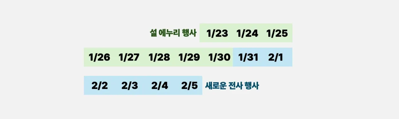 설 연휴부터 2주 동안 매일 전사 행사가 진행됩니다!