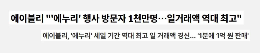 작년 명절 ‘에누리 행사’기간 방문자 수는 무려 1천만 명을 돌파했으며, 거래액은 전년 동기 대비 55% 증가했습니다.