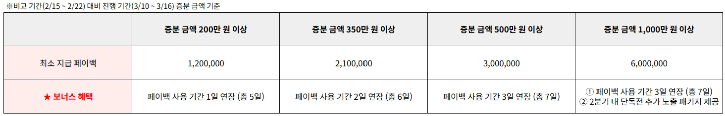 (1) 최대 50% → 최대 60% 페이백으로 상향 지급 (기존 대비 +10% 추가)