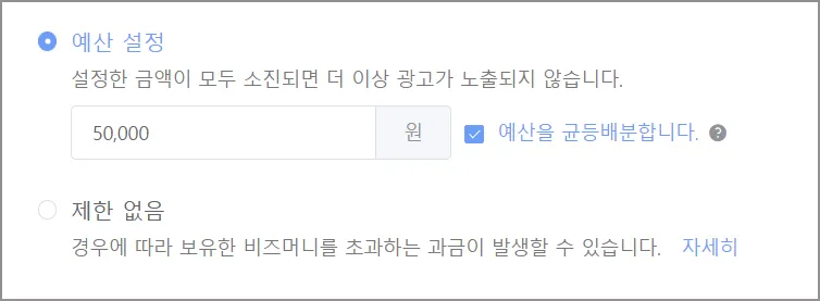 충전된 비즈머니만큼 광고가 노출되며, 비즈머니가 모두 소진되면 광고는 자동으로 중단됩니다.
