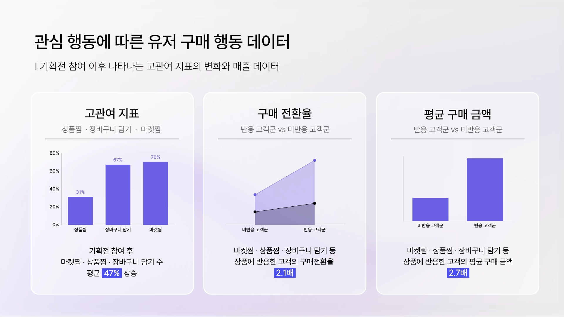 즉, 이러한 고관여 지표의 상승은 이후 구매 가능성이 높은 고객이 늘어났다는 것을 의미해요.