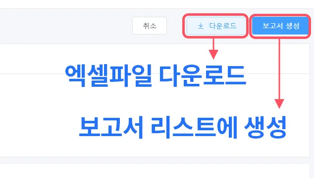 * 위 보고서 리스트 화면에서도 엑셀파일을 다운로드 받을 수 있습니다. (우측 ‘다운로드’ 버튼)